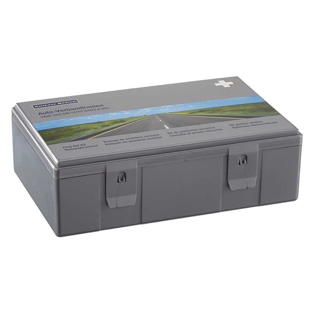 Kit de primeiros socorros que inclui tudo o que você precisa para atender a pequenos acidentes durante a viagem.