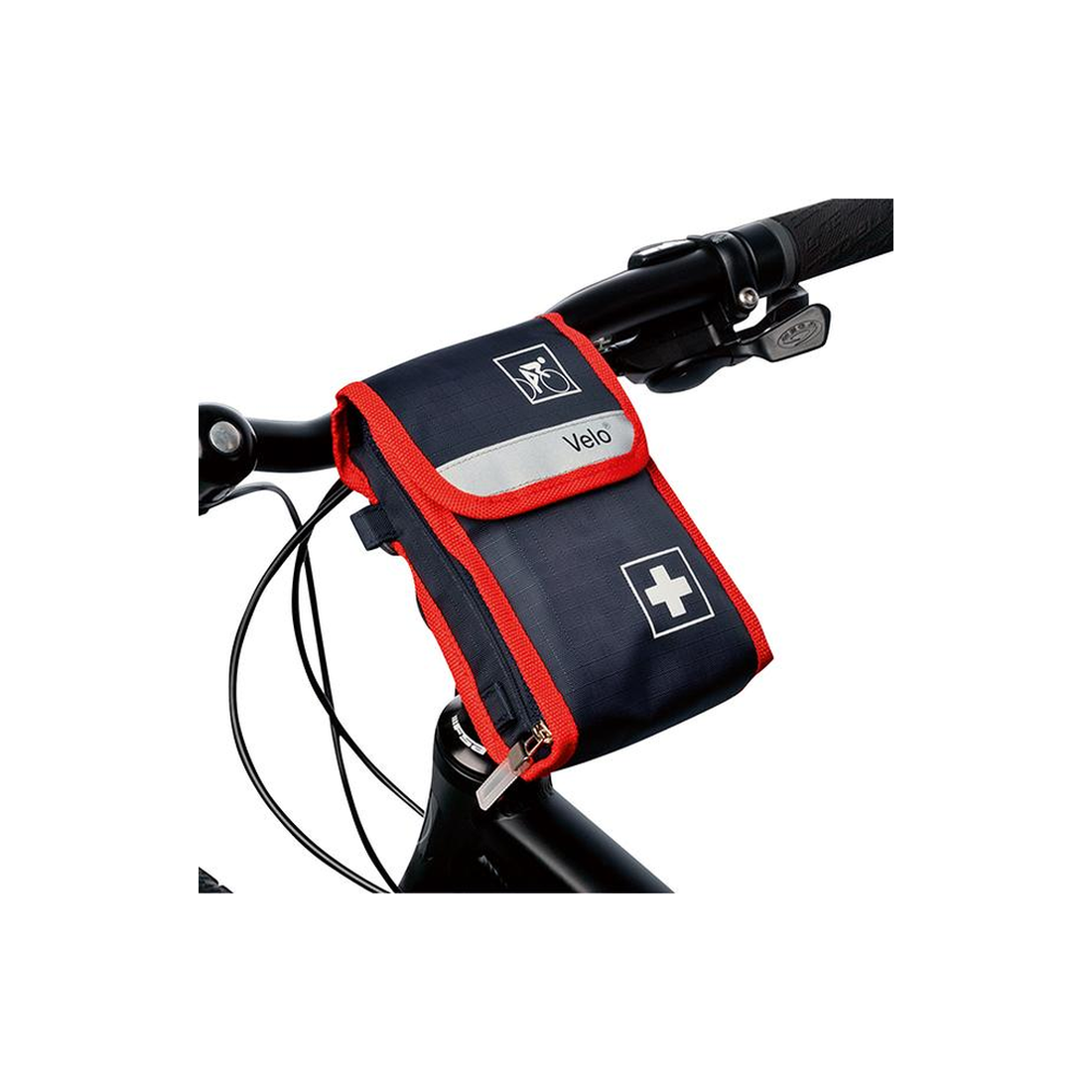 Kit de primeiros socorros que inclui tudo o que você precisa para atender a pequenos acidentes durante a viagem.