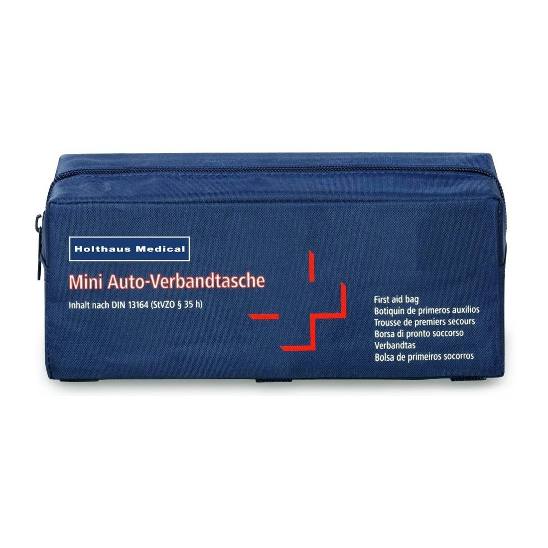 Kit de primeiros socorros que inclui tudo o que você precisa para atender a pequenos acidentes durante a viagem.