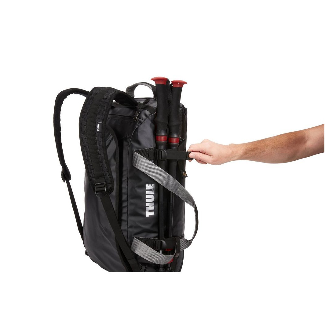 Evita que o conteúdo caia para o fundo do saco quando o utiliza como mochila graças às correias de ajuste externo