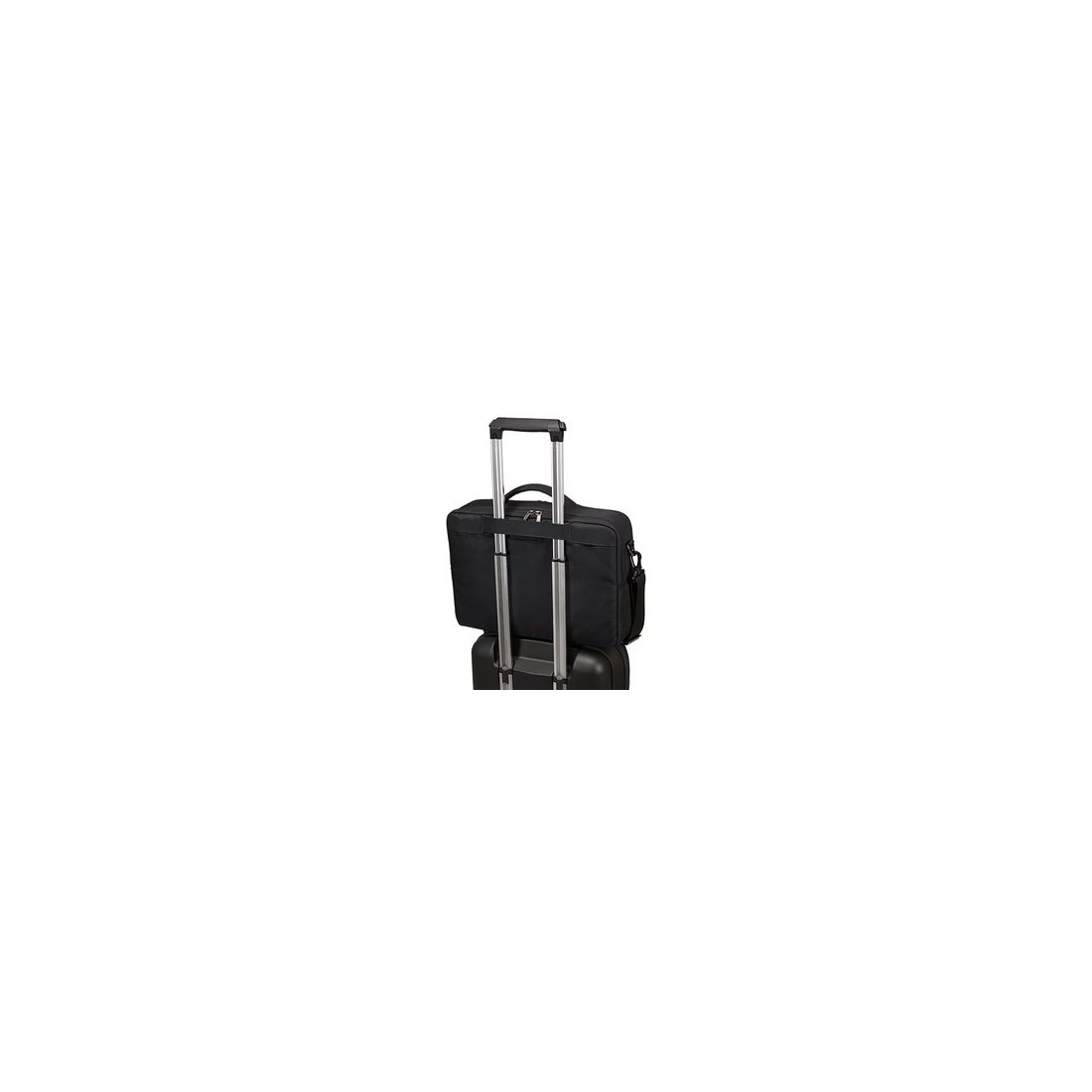 - Sistema de fixação traseira que permite fixar o saco à pega telescópica das malas de rolamento, facilitando a mobilidade durante as viagens.