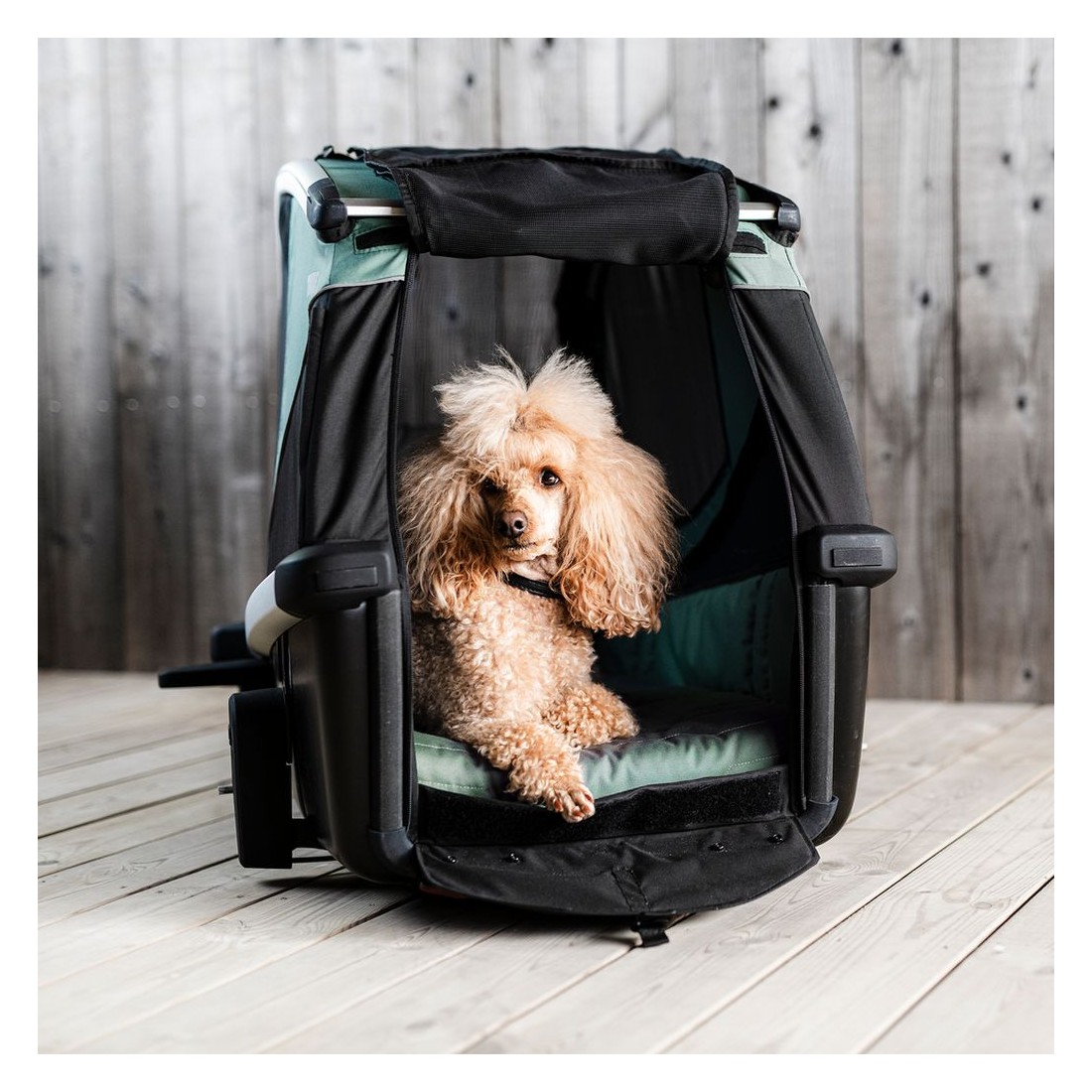 Você também pode transformar seu trailer Thule Bexey em uma ferramenta de treinamento em casa, removendo as rodas, o braço do engate e colocando a base diretamente no chão. Esse recurso permite que seu animal de estimação se acostume com o trailer e se sinta confortável e confiante ao sair.