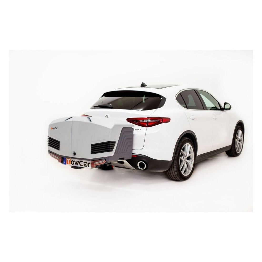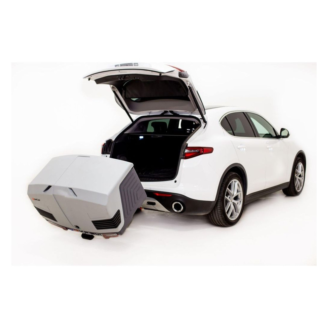 Ele é instalado diretamente na bola de reboque sem a necessidade de ferramentas, pois incorpora a plataforma e a fixação. Possui uma alavanca ergonómica que facilita a ancoragem.