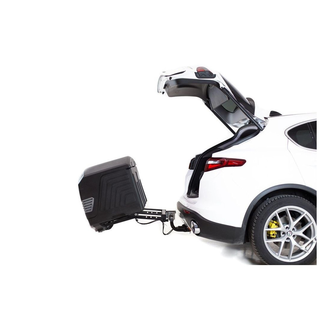 Ele é instalado diretamente na bola de reboque sem a necessidade de ferramentas, pois incorpora a plataforma e a fixação. Possui uma alavanca ergonómica que facilita a ancoragem.