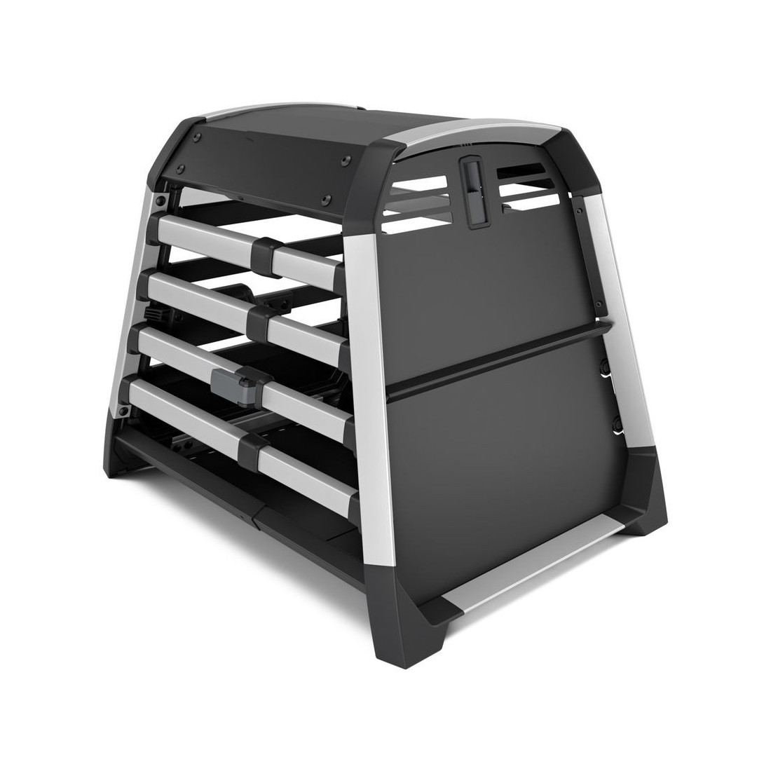 O design do suporte permite-nos ter uma visibilidade perfeita do cão graças às suas aberturas entre as barras transversais e a janela superior.