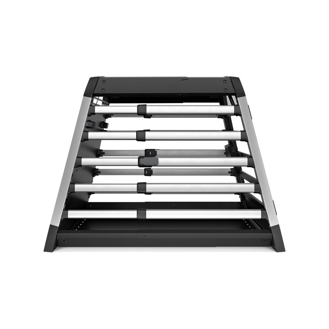 O design do suporte permite-nos ter uma visibilidade perfeita do cão graças às suas aberturas entre as barras transversais e a janela superior.