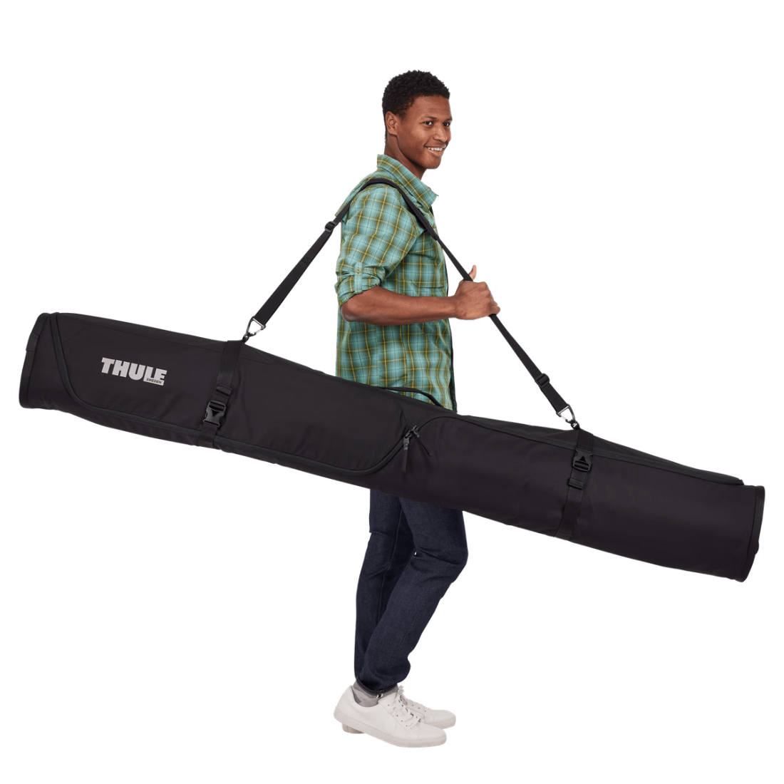 A bolsa de Thule de ida e volta foi projetada para fornecer proteção excecional para o seu equipamento de esqui, oferecendo soluções práticas para transportá-lo com segurança e eficiência. Com capas acolchoadas, correias de ajuste e um design funcional, irá garantir que os seus esquis, bastões e acessórios cheguem ao seu destino em perfeitas condições.