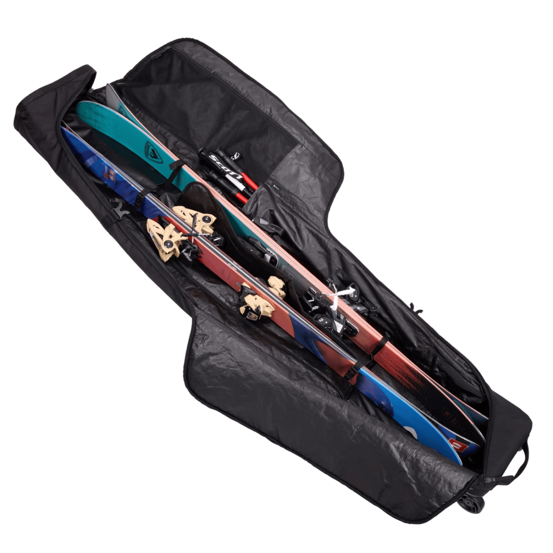 - Divisor acolchoado para esquis: Um divisor acolchoado removível separa os esquis e também funciona como uma almofada para os pés, garantindo que o equipamento permaneça no lugar durante o transporte.