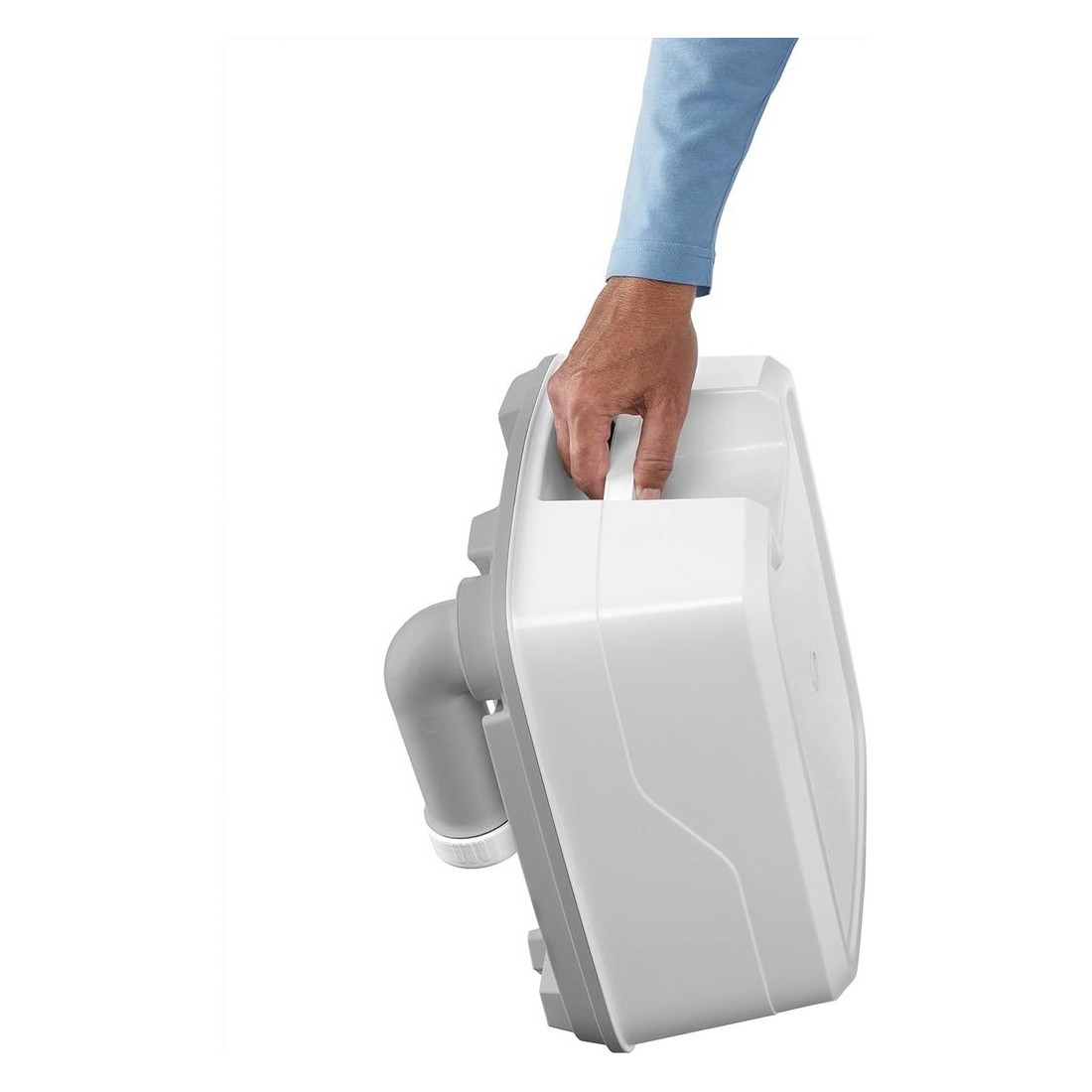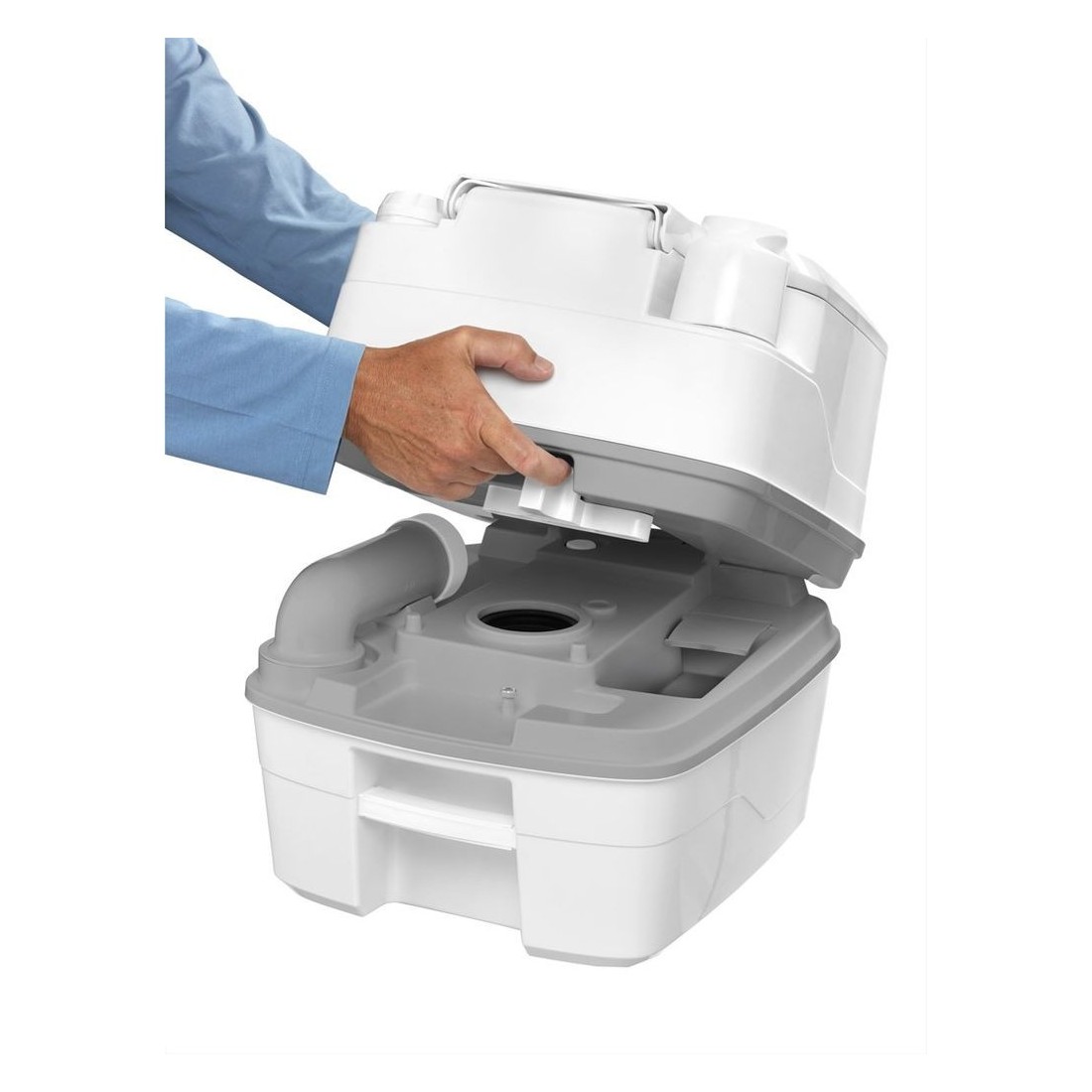 Possui um tanque de água limpa com capacidade para 10 litros e um tanque de águas residuais de 10 litros, garantindo cobertura para todas as suas necessidades. O tanque de resíduos também tem um botão de ventilação, que é pressionado durante o esvaziamento para evitar salpicos irritantes.