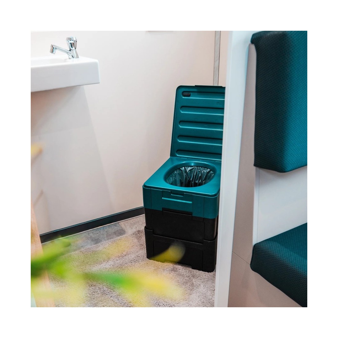 Desenvolvido inicialmente para o setor sanitário, este sanitário portátil oferece os mais elevados padrões de higiene. A eficácia da sua película de alta barreira foi validada pelo Instituto Fraunhofer IVV, garantindo uma proteção superior contra líquidos e odores.