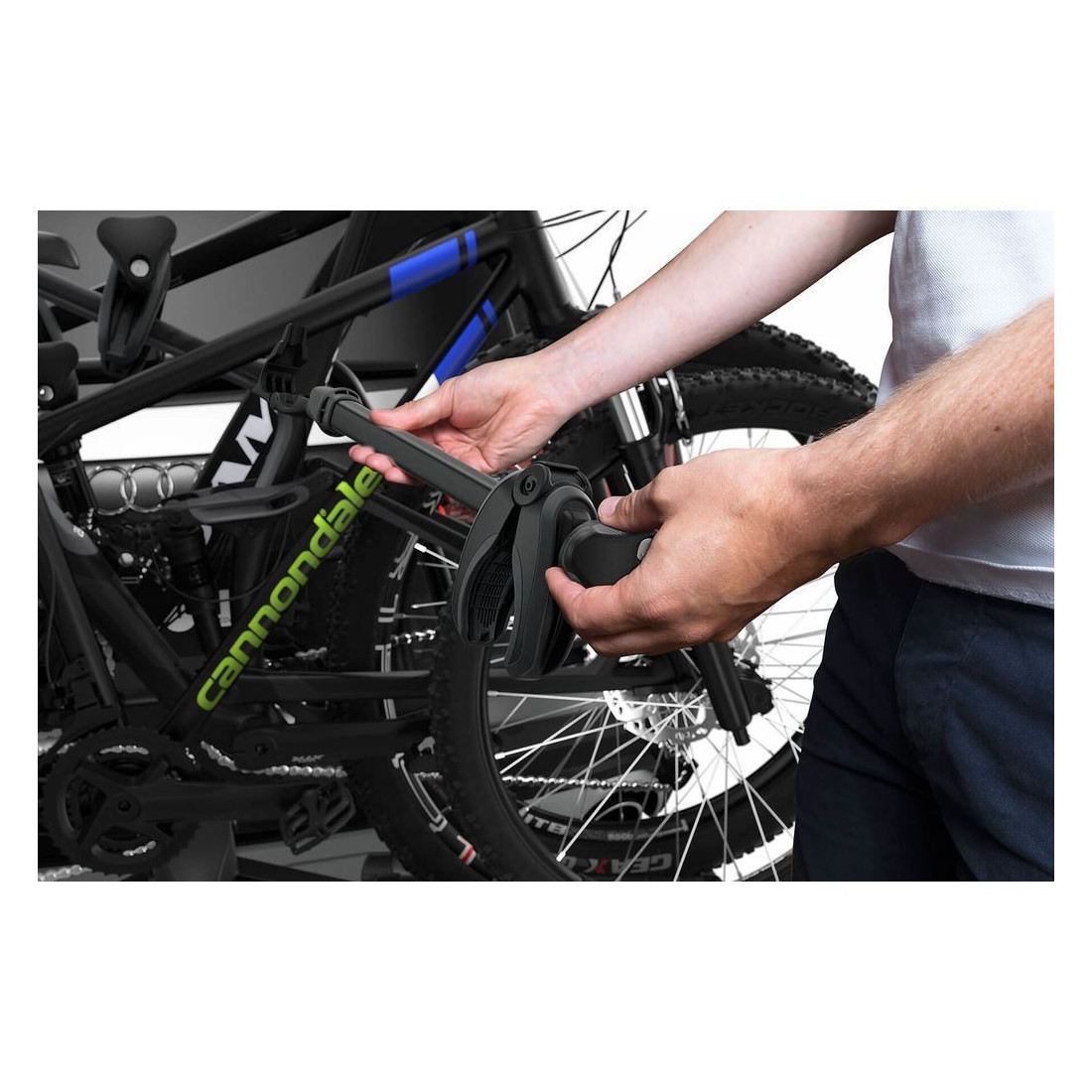 Fácil montagem das bicicletas usando braços destacáveis com limitadores de aperto AcuTight Thule que clicam quando o aperto ideal é alcançado.