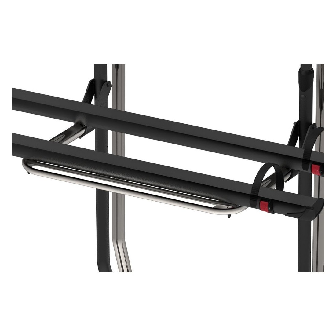 Estrutura em aço inox e trilhos de alumínio que proporciona robustez, qualidade e segurança no transporte de bicicletas.