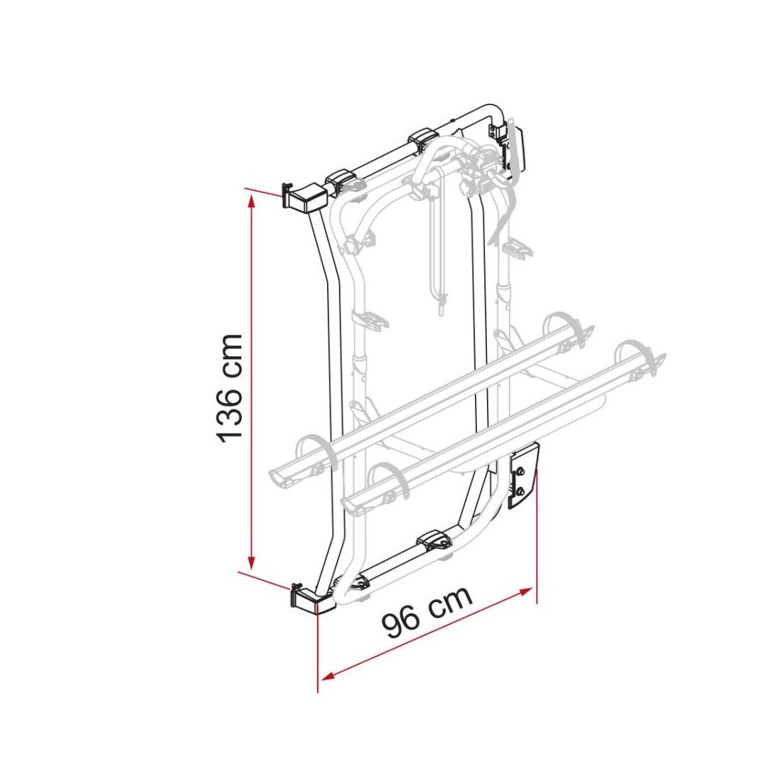 A instalação é feita fixando-o à porta traseira direita. Utiliza as dobradiças das portas, pelo que garante estabilidade e facilidade de montagem. Além disso, permite que a porta seja aberta com o Porta-bicicletas instalado, mesmo com bicicletas carregadas.