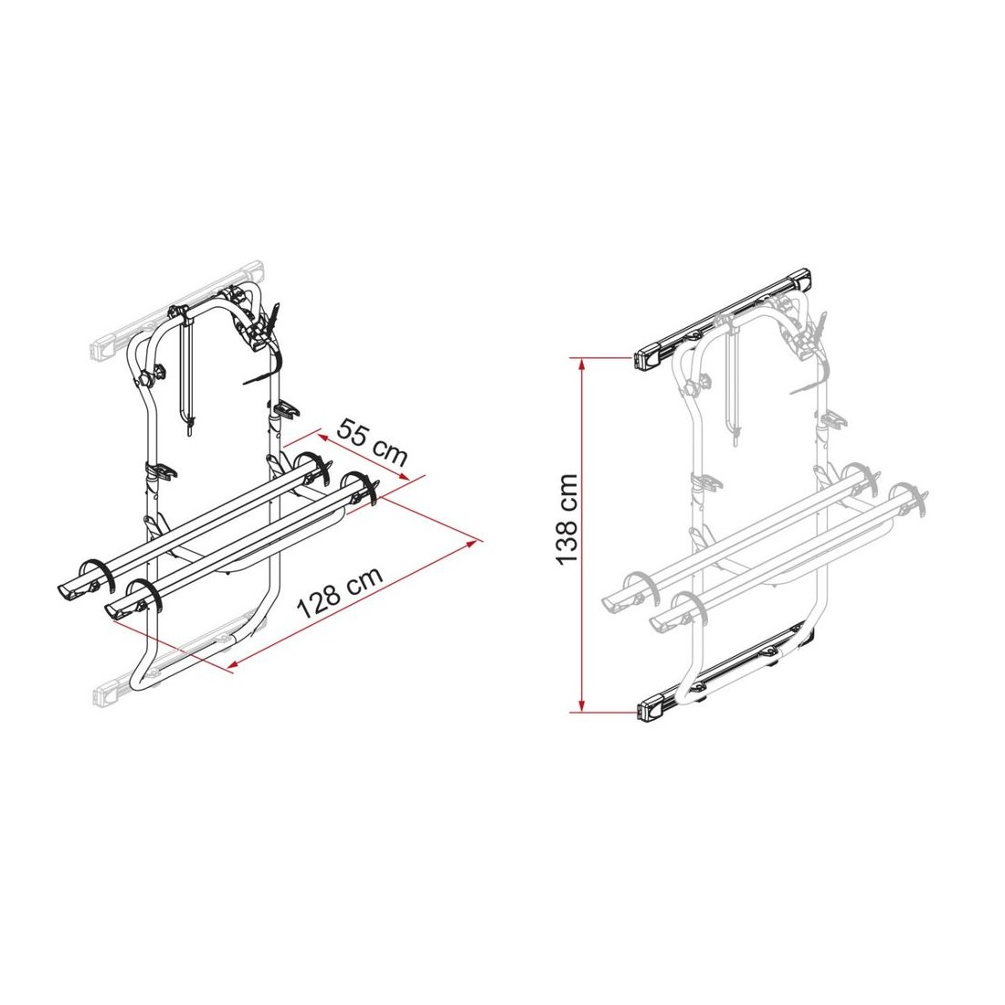 Permite o transporte de 2 bicicletas na zona traseira.
