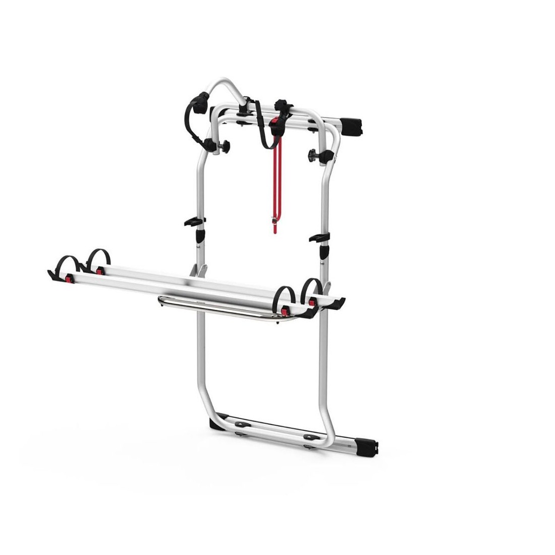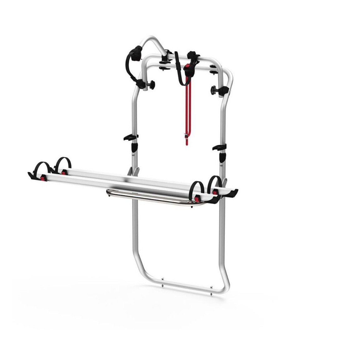 Os trilhos específicos para este modelo estão instalados na porta traseira direita, que será responsável pela fixação e fixação do Porta-bicicletas de porta. Além disso, permite que a porta seja aberta com o Porta-bicicletas instalado, mesmo com bicicletas carregadas. Possibilidade de montar uma escada Deluxe na porta traseira esquerda.