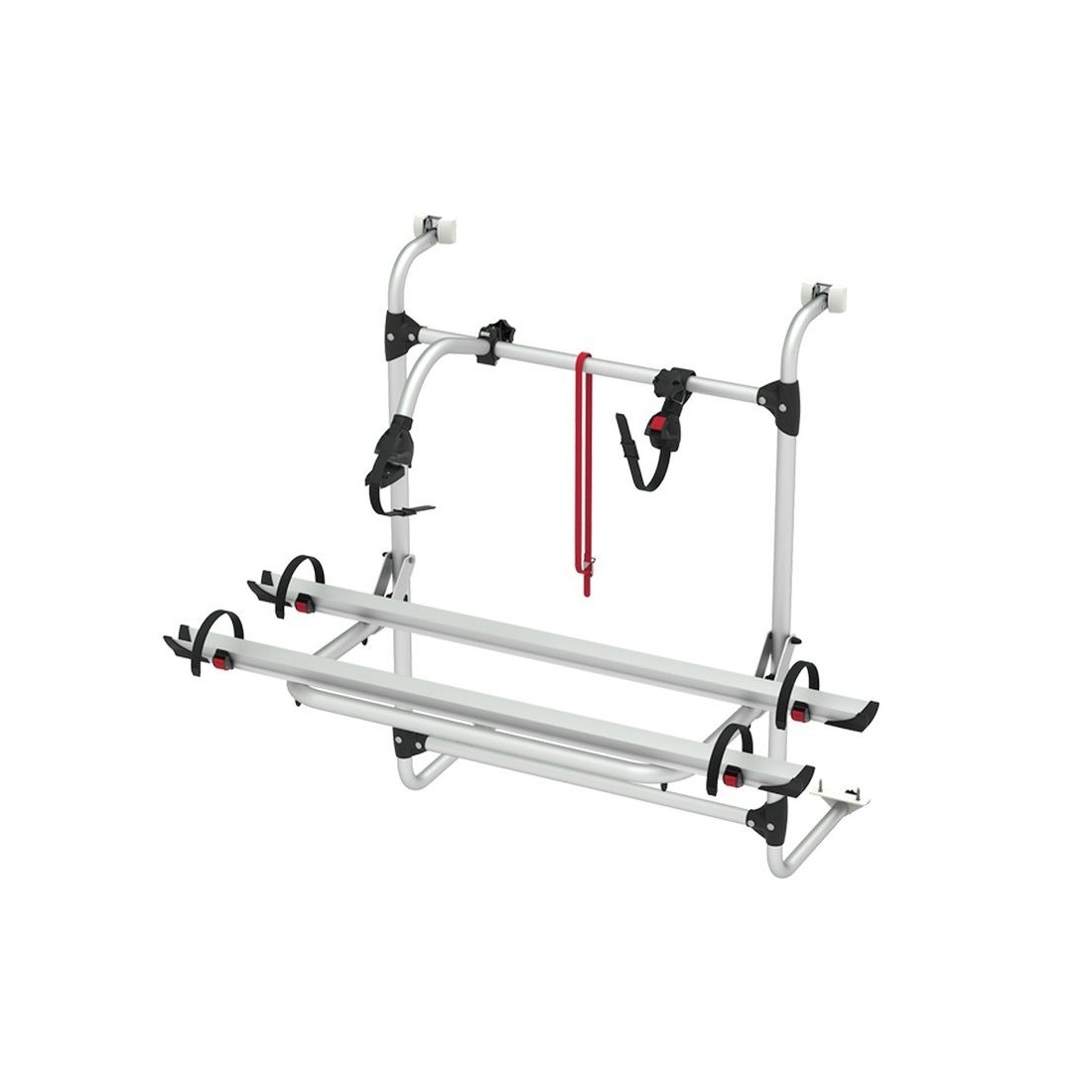 Porta-bicicletas específico para caravanas (compatível com a maioria) que permite transportar 2 bicicletas na área traseira do veículo.