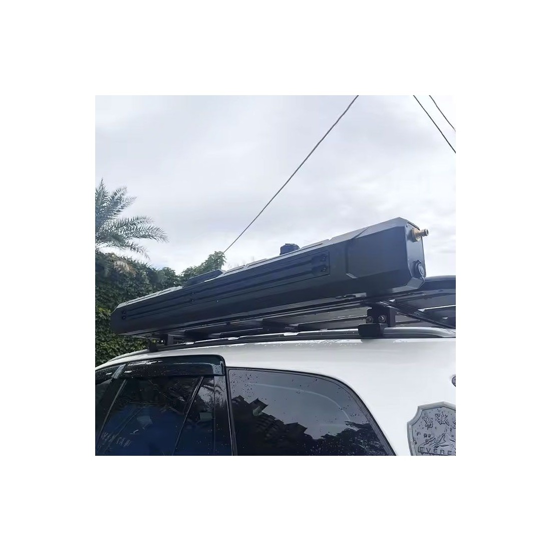 Este sistema é facilmente instalado sobre as barras de carga do veículo e dispõe de uma bomba elétrica integrada que proporciona um fluxo constante de água. A sua ligação à tomada de 12V do veículo torna-o uma ferramenta versátil e eficiente para quem procura conforto e funcionalidade nas suas aventuras.