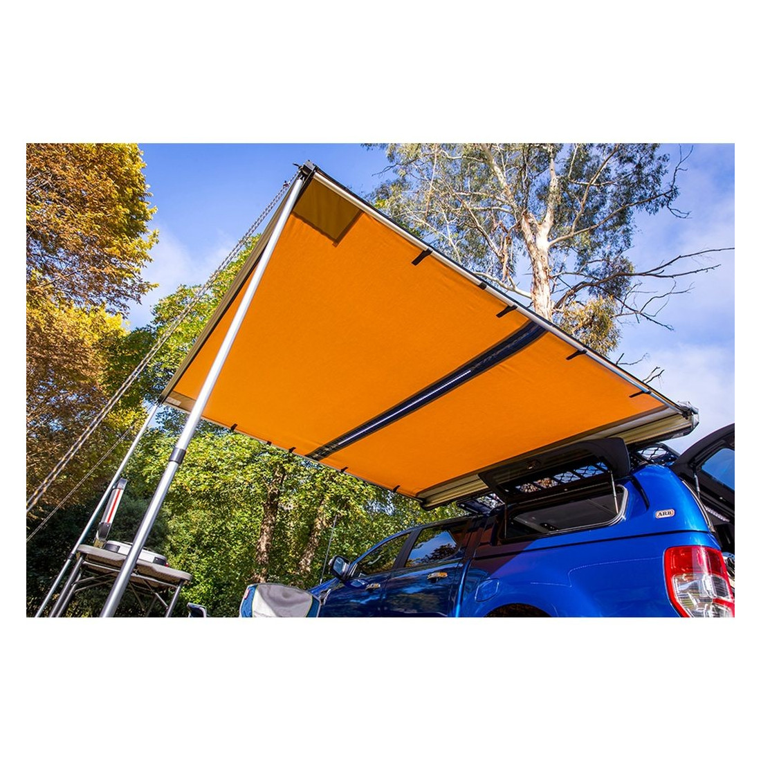 Complemente o seu acampamento com o toldo lateral com cobertura de PVC com luz LED de ARB. Disponível em dois tamanhos, 250cm e 200cm.