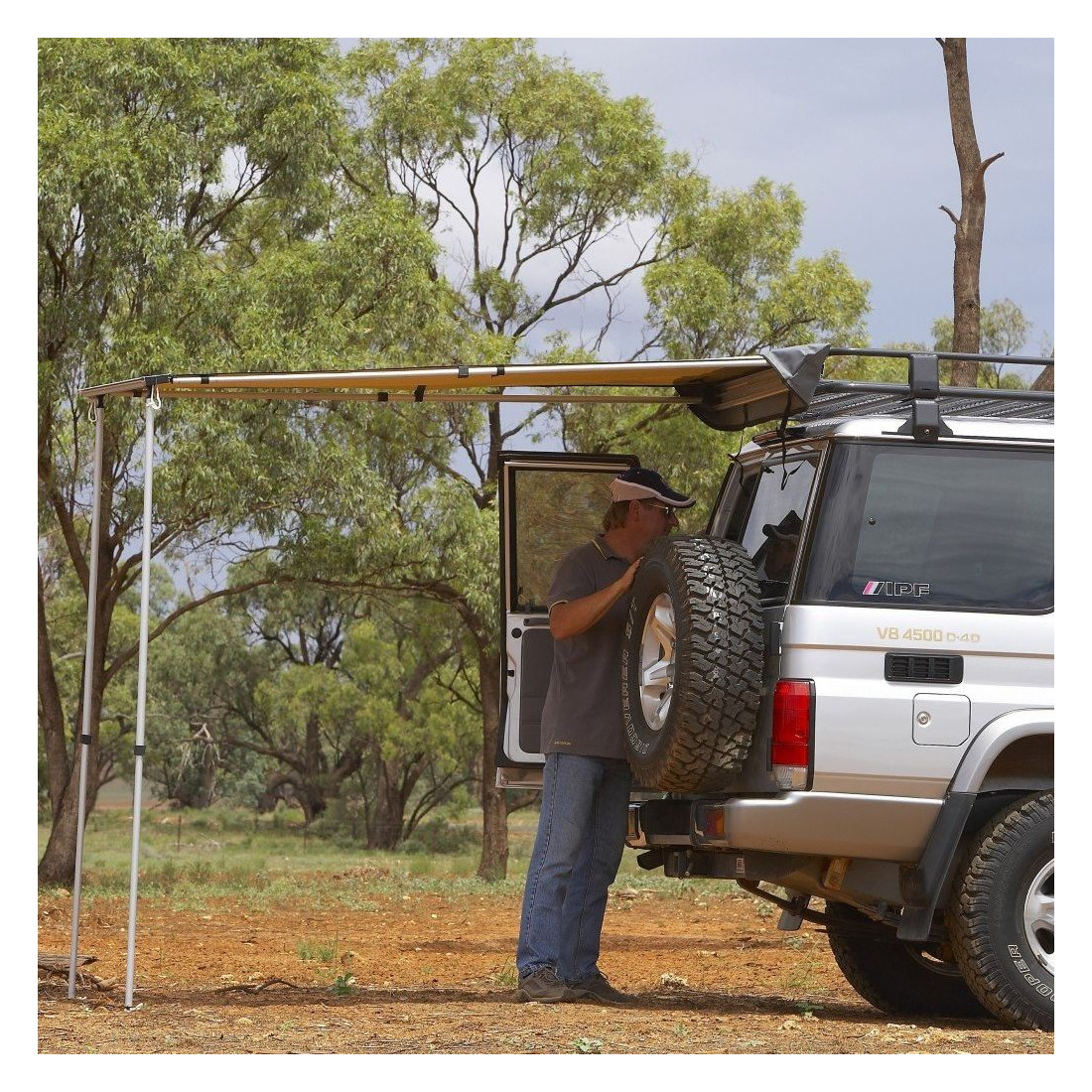 O toldo lateral com tampa de PVC de 125 cm ARB é o acessório ideal para o seu camping: é armazenado em uma cobertura de PVC com zíper que facilita sua abertura e fecho.