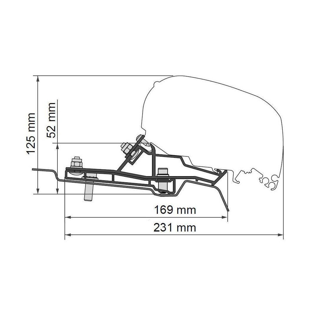 Com 2,90 m de comprimento, o toldo é facilmente instalado na zona elevada do tejadilho da carrinha utilizando os suportes específicos incluídos, proporcionando uma estabilidade e firmeza incomparáveis.