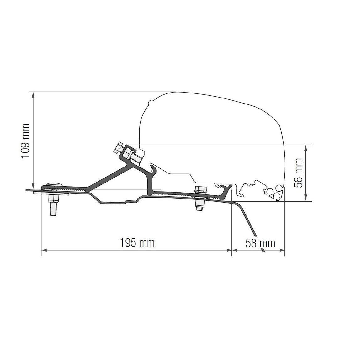 Com 3,70 m de comprimento, o toldo é facilmente instalado na zona elevada do tejadilho da carrinha utilizando os suportes específicos incluídos, proporcionando uma estabilidade e firmeza incomparáveis.