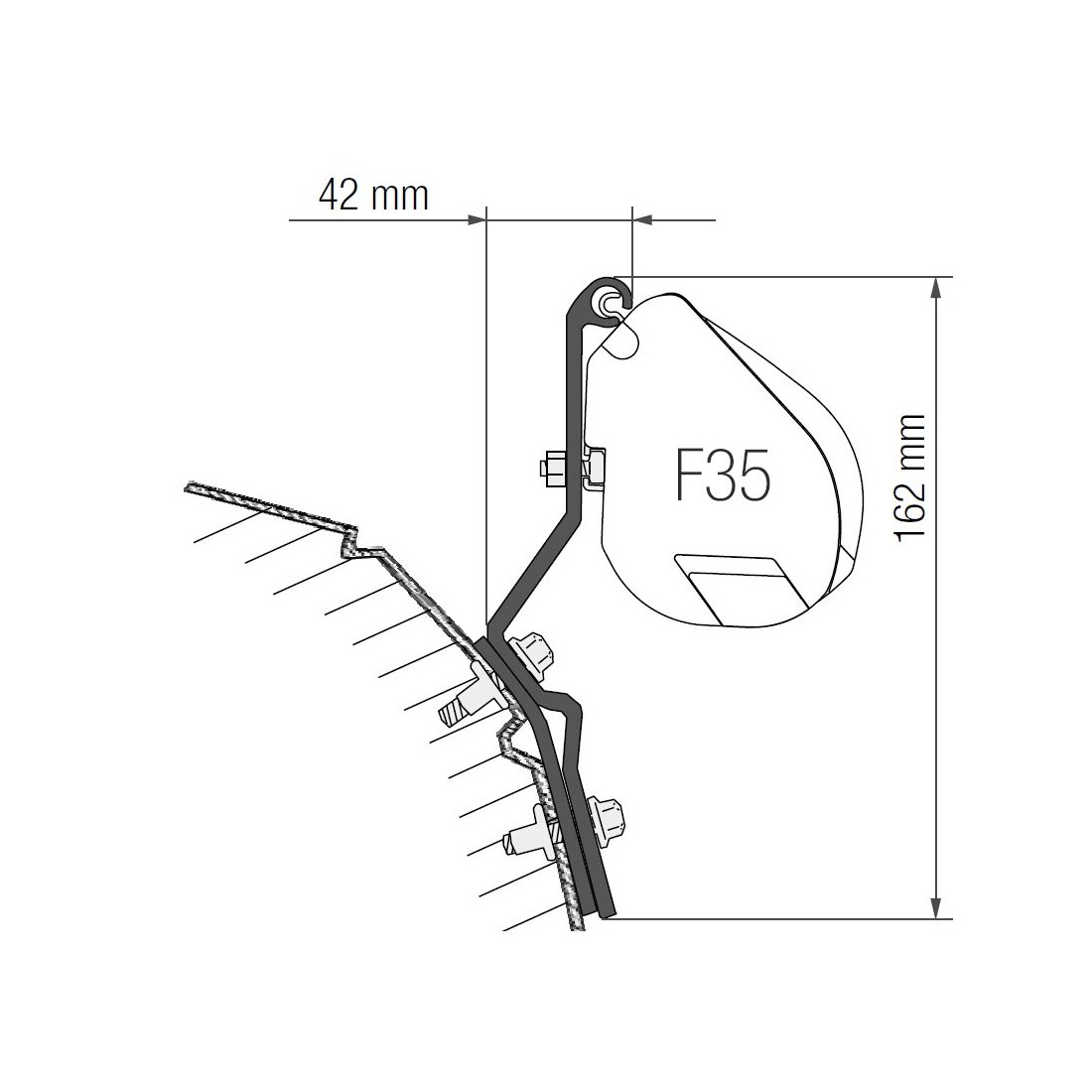 Com 2,70 m de comprimento, o toldo é facilmente instalado na área alta do teto da Carrinha usando os suportes específicos incluídos, proporcionando estabilidade e firmeza incomparáveis.