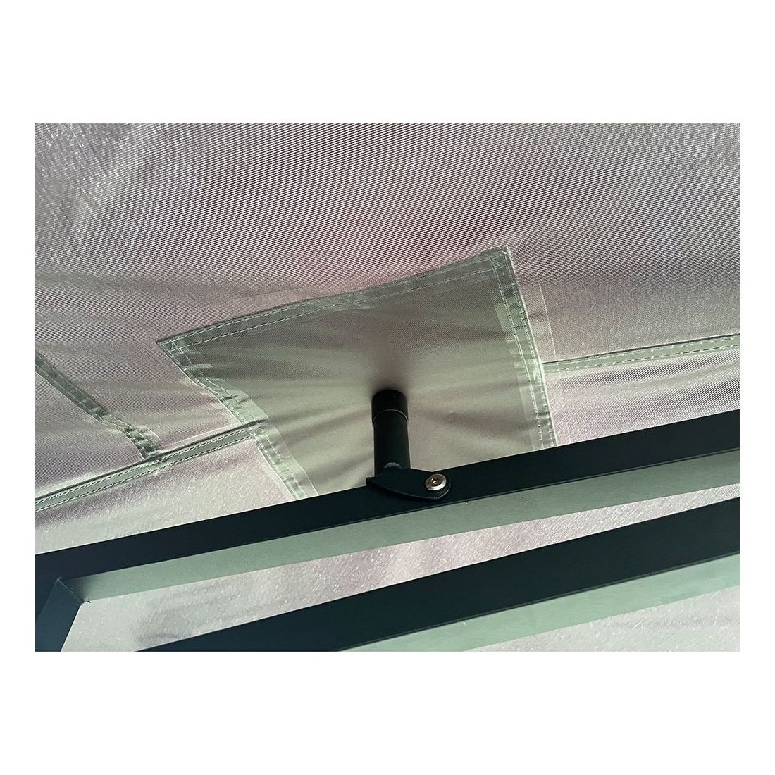 É feito de lona resistente ao rasgo e impermeável e inclui o hardware necessário para a sua instalação.