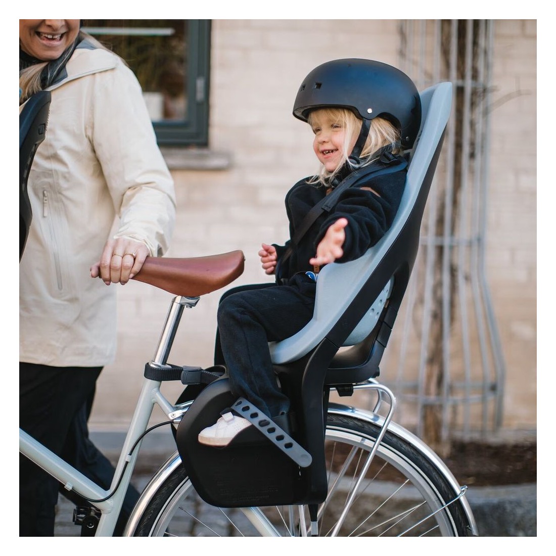 Sistema universal de montaje en rack para una instalación fácil y rápida del asiento infantil en la bicicleta.